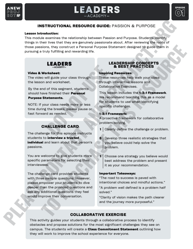 PASSION & PURPOSE: SAMPLE